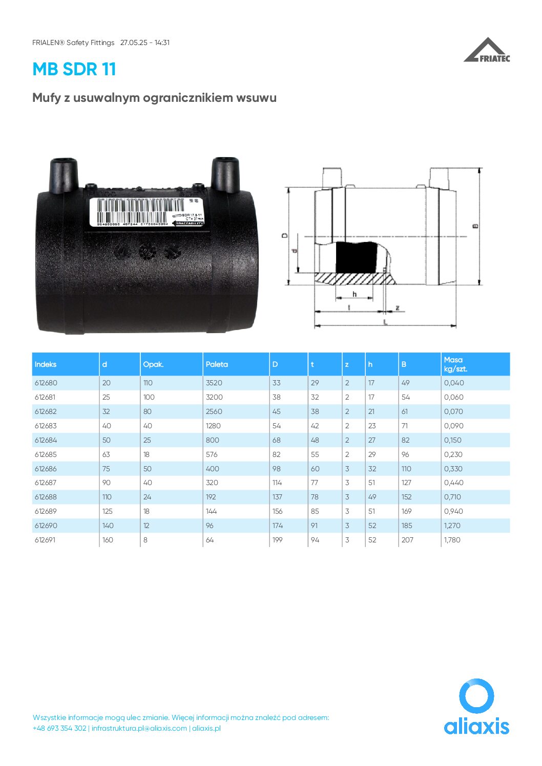 FRIALEN Mufa elektrooporowa MB PE100 SDR11 dn 32 ELEKTROMUFA