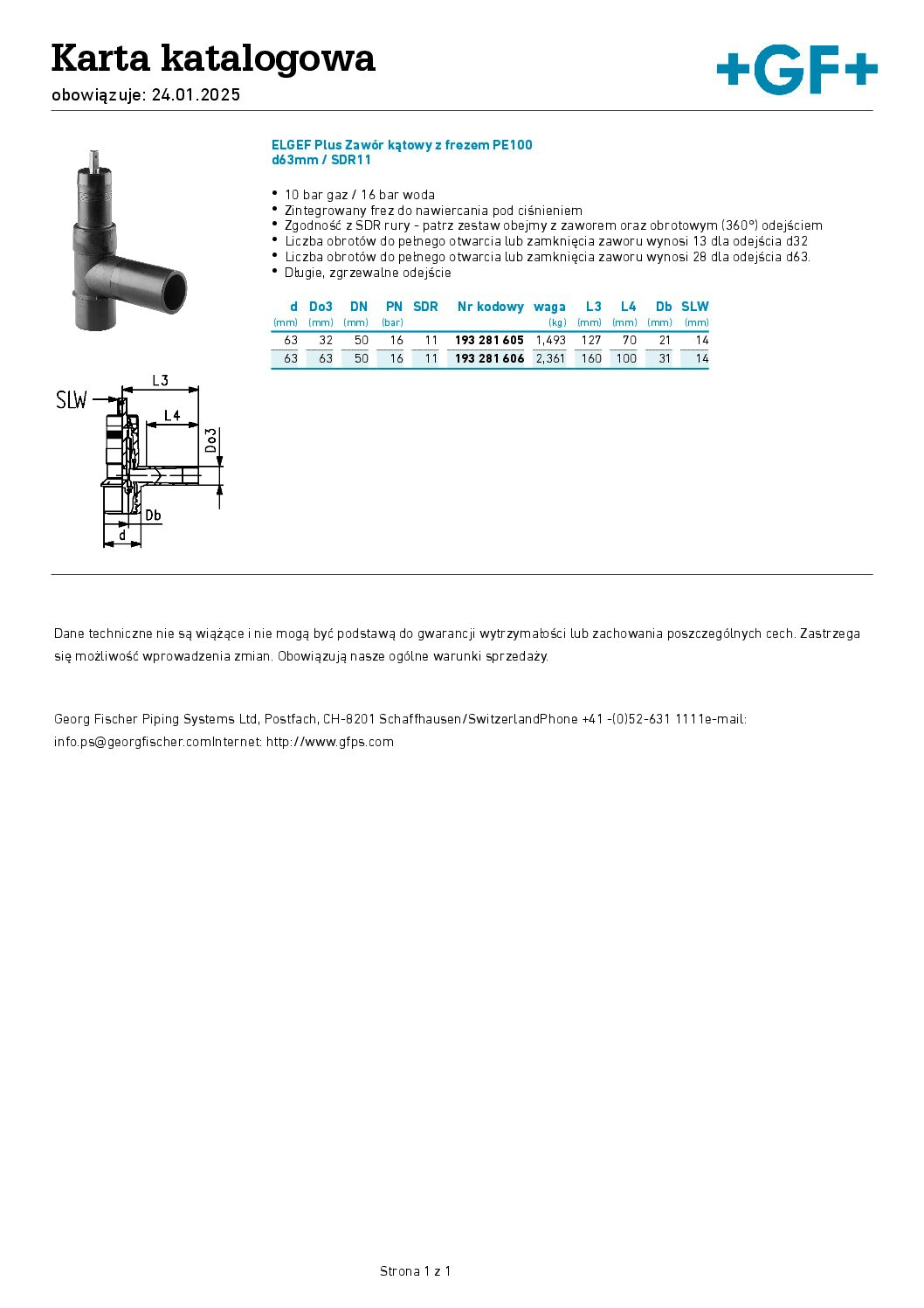 • Liczba obrotów do pełnego otwarcia lub zamknięcia zaworu wynosi 28 dla odejścia d63.