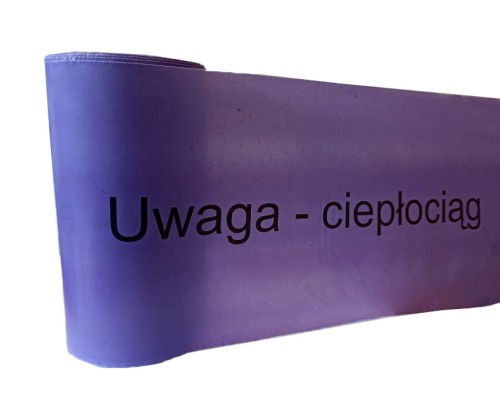 Taśma ostrzegawcza fioletowa z nadrukiem służy do oznakowania tras linii energetyki cieplnej. Dzięki umieszczeniu taśmy nad ciepłociągiem ryzyko uszkodzenia rur podczas prac ziemnych jest minimalizowane, a co za tym idzie – zmniejsza się ryzyko pozbawienia mieszkańców ogrzewania ich domów. Taśma została wykonana z polietylenu pochodzącego z recyklingu. Taśma ma nadruk „Uwaga – ciepłociąg” i zgodny z wymogami fioletowy kolor. Produkt zgodny z normą polską PN-EN 12613.